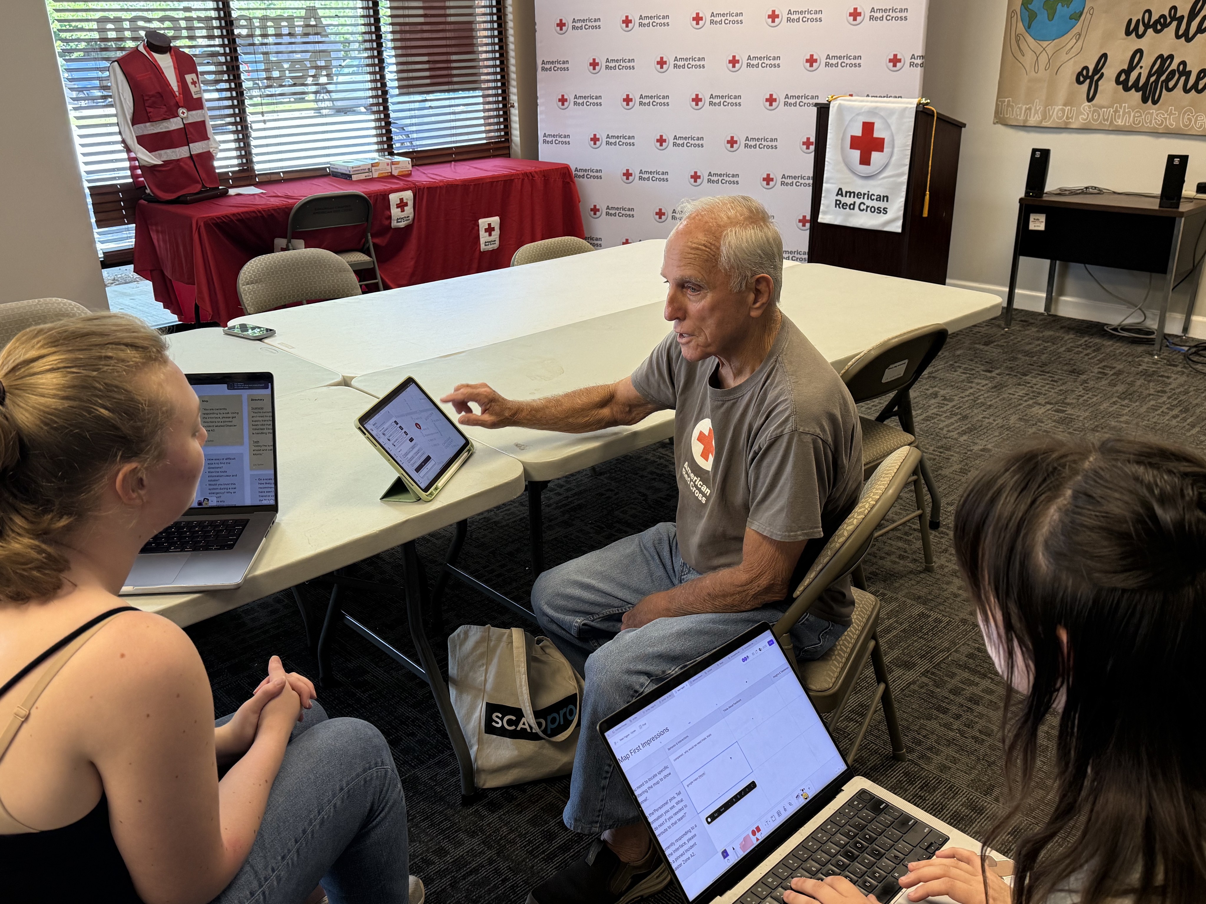 Five of us team members visited the American Red Cross Headquarters in Savannah to study their disaster response vehicles, exploring both the interior and exterior to identify gaps where design could help.