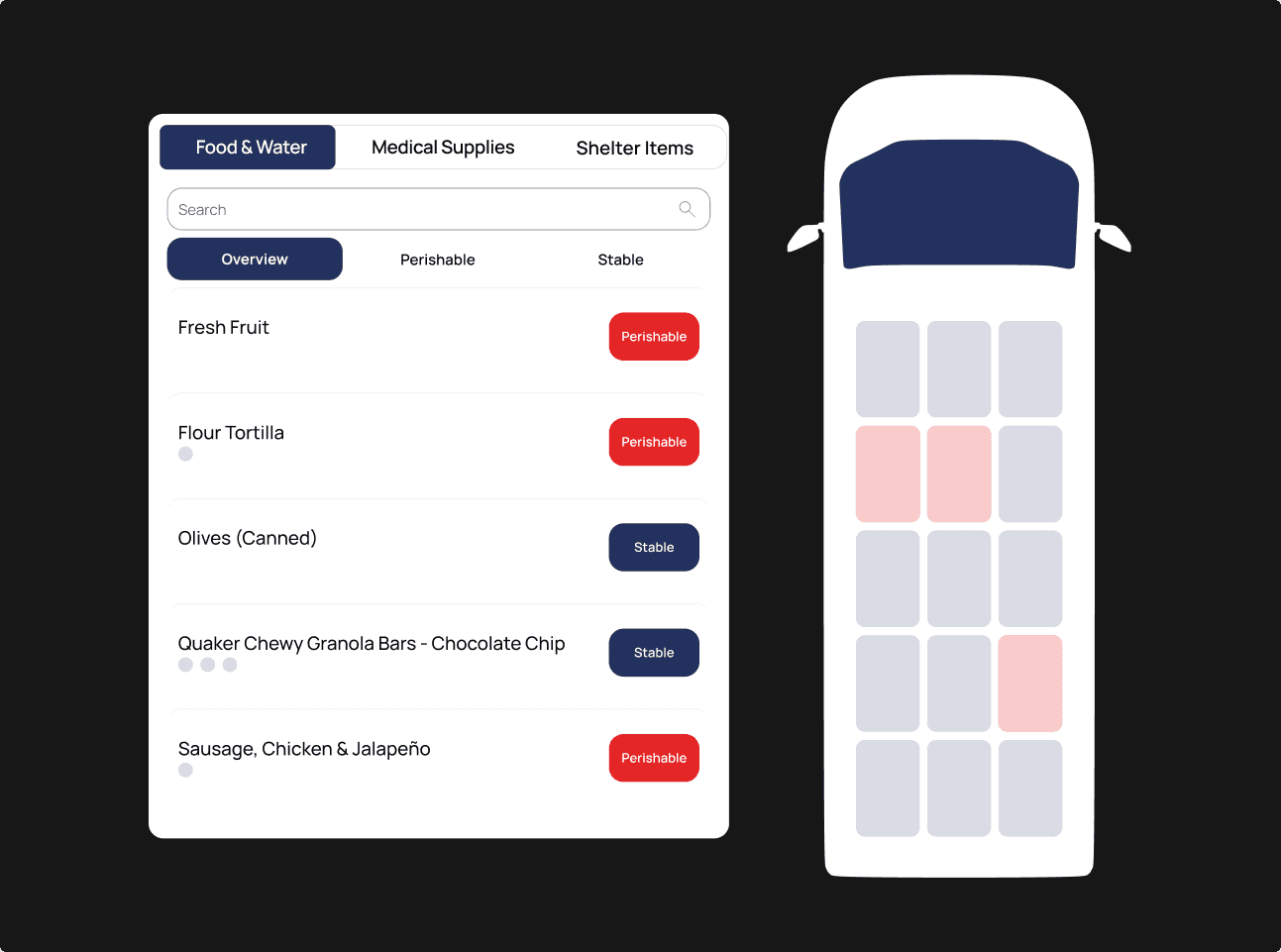 A clear vehicle map and live count tracks supplies by location and quantity.