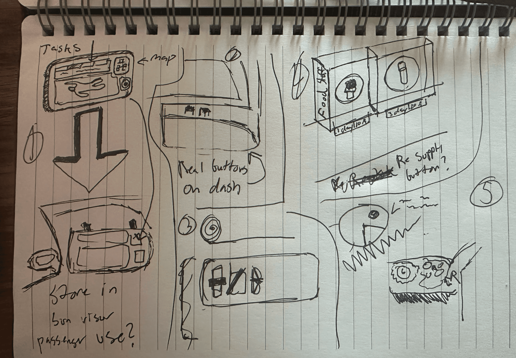 Our process combined quick sketching, divergent ideation, and interaction mapping to uncover potential directions. Crazy 8's to mid-fidelity sketching pushed us to test breadth before refining into focused prototypes.