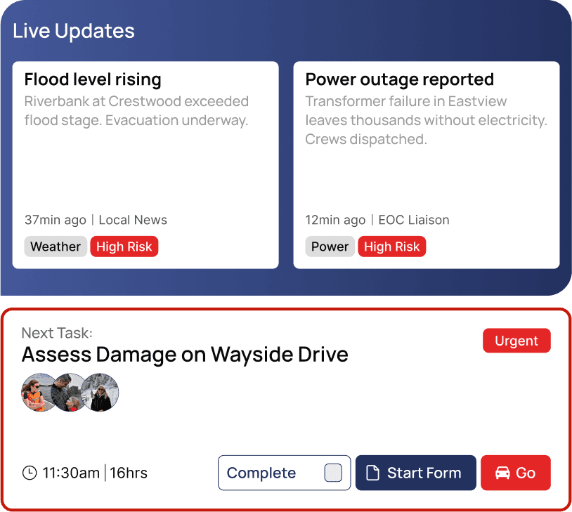 Teams are able to zero in on live updates and tasks that are relevant to their mission.