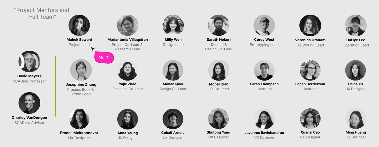 The project was driven by 8 major student leads from SCAD, working in close collaboration with Deloitte teams based in Chicago and New York. This two-way partnership fostered an energetic, professional, and purpose-driven workflow throughout the engagement.