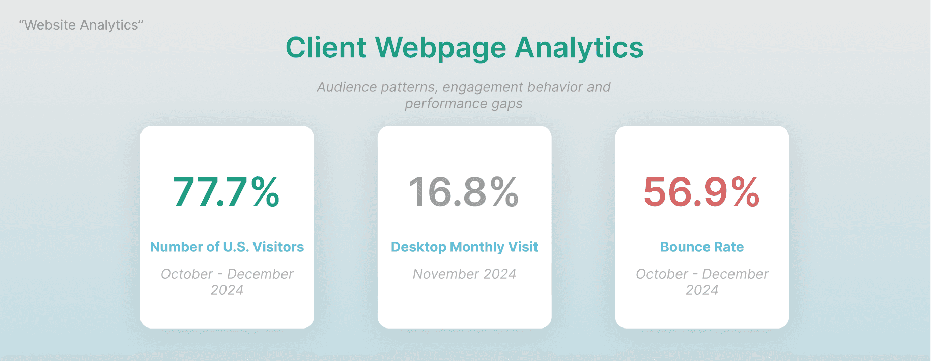 Analyzed visitor behavior to inform research, validate assumptions, and guide design direction.
